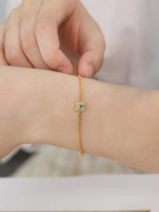 18K Gold Green Diamond Square Bracelet